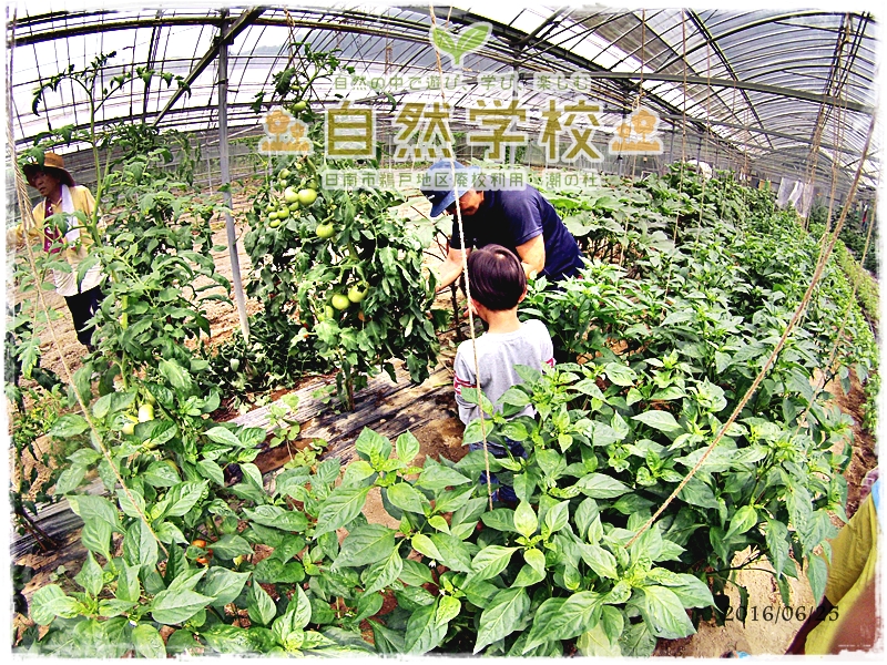 ビニールハウスでの農作業体験、夏野菜の収穫もおこないまし。